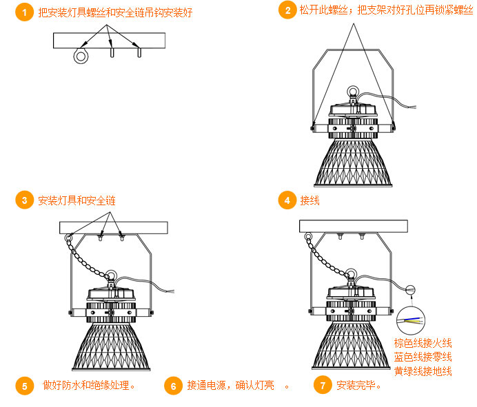 2.安裝燈具時,務必安裝安全鏈;