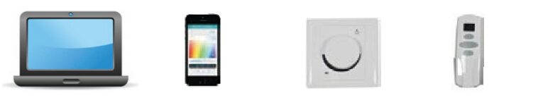 PC控制(wifi連接手提電腦)                          APP控制(wifi連接手機/平板)    旋鈕控制                                        遙控控制